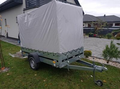9Przyczepka samochodowa z wysoką plandeka i lekkim stelażem można ściągnąć w całości z plandeka dwie burty domykane ...
