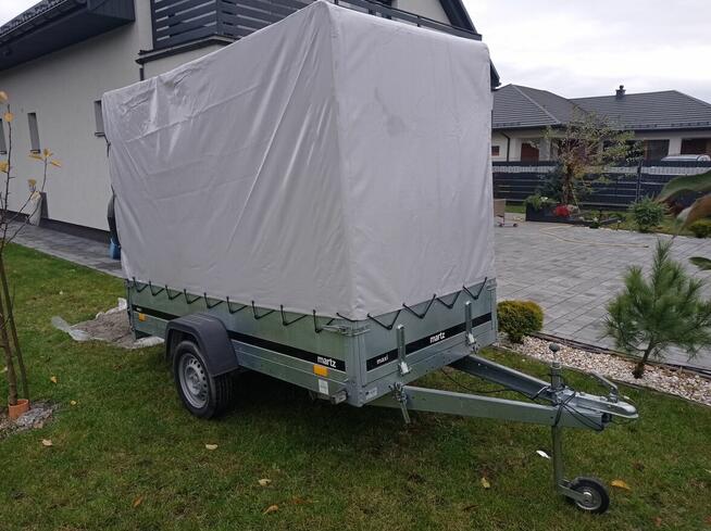 5Przyczepka Martz Maxi Vero wzmocnione burty stelaż z wysoką plandeką,stan idealny wysoka 185 wewnątrz przestrzeni ...