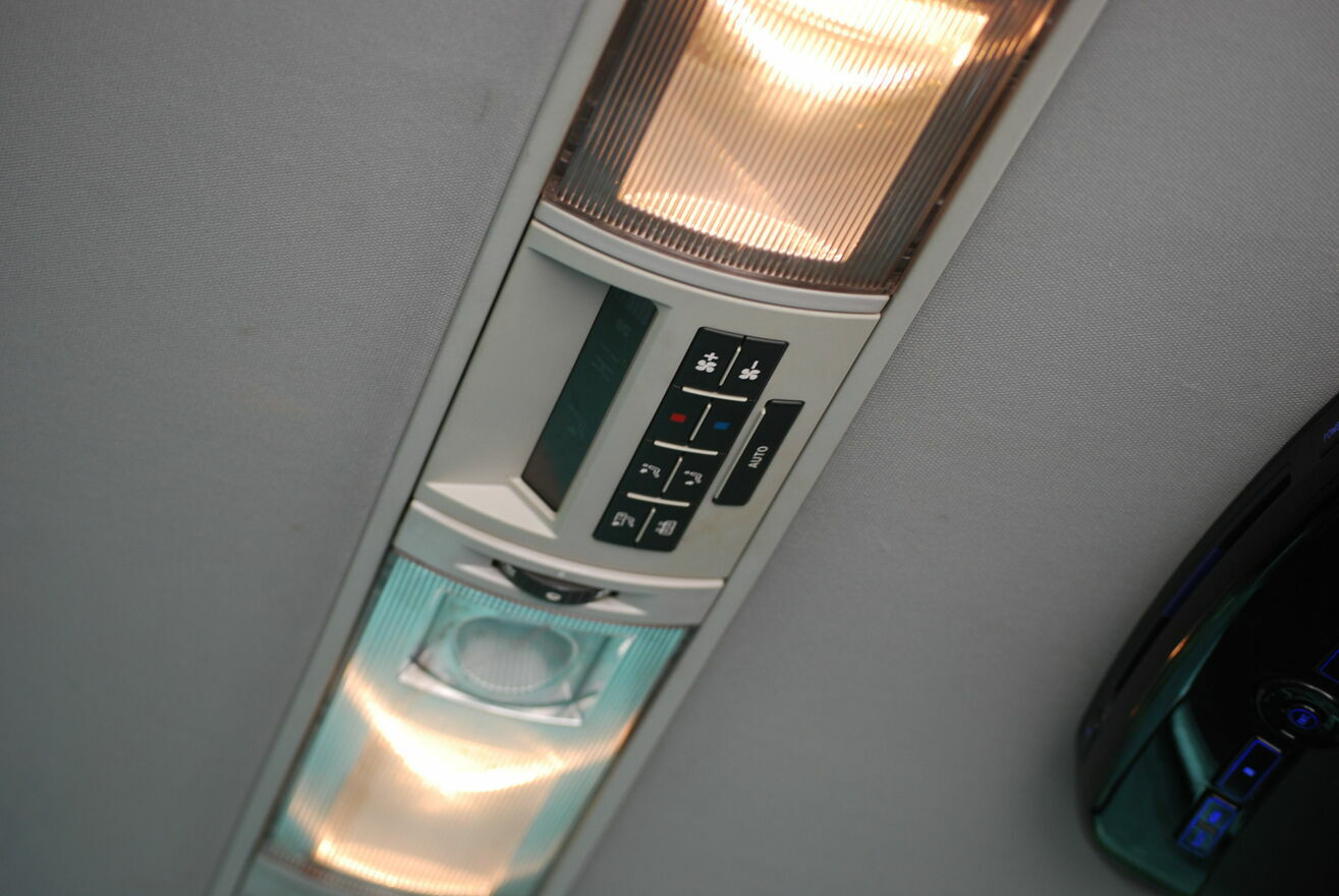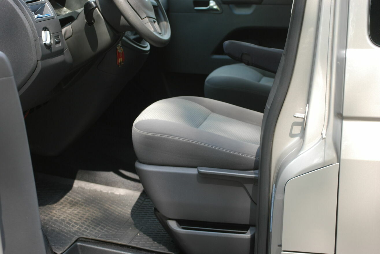 Ten 8-osobowy minivan w eleganckim szarym kolorze oferuje mnóstwo miejsca dla pasażerów i bagażu. Komfort podróży podnosi dwustrefowa klimatyzacja automatyczna oraz welurowa tapicerka. Dodatkowo, przyciemniane szyby zapewniają prywatność i ochronę przed słońcem.